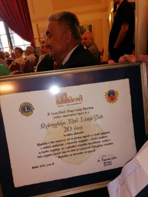 „Köszönöm az Első Nyíregyházi Lions Club valamennyi tagjának az odaadó szolgálatot, a cselekvő szolidaritást, a folyamatos megújulást, a töretlen lendületet, az önzetlen segítséget és a széles körű nemzetközi kapcsolatokat, amellyel a Lions-mozgalom hírnevét sikerrel vitték és terjesztették” – fogalmazott dr. Fogarassy Csaba, a Lions Clubok Magyarországi Szövetségének kormányzója. Gödöllőn az elismerő oklevelet Antal Roland, a nyíregyházi klub leköszönő elnöke vehette át.